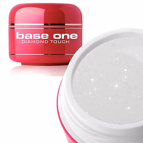 Base One Diamond Touch är en genomskinlig enfasgelé med diamantskimmer, perfekt för att bygga på tippar eller mall.  Medeltjock, självutjämnande - lättarbetad.