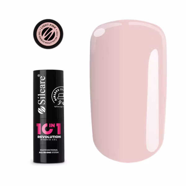 Silcare 10in1 Hybrid Gel fungerar som bas, builder och toplack i en och samma produkt. Den har bra vidhäftning mot den naturliga nageln, mediumtjock konsistens som är självutjämnande och bildar en glansig och hård yta vid härdning.