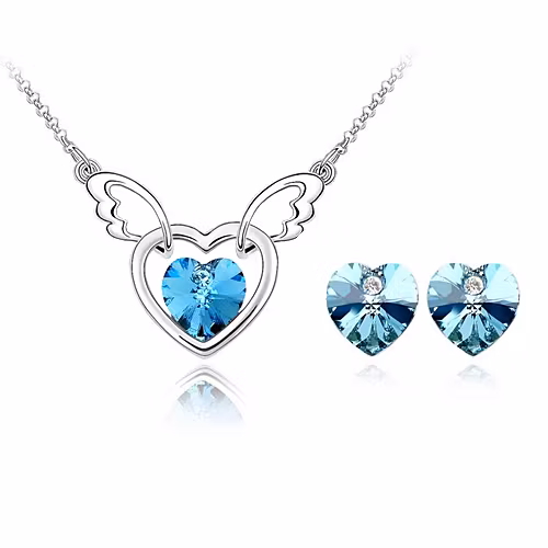 Silvrigt smyckeset med vackra blå hjärtformade kristaller!