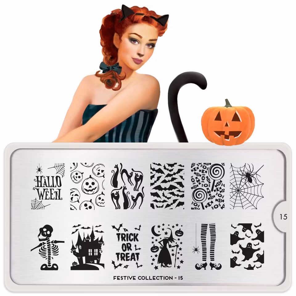 MoYou London Festive 15 innehåller 12 olika designer, var och en med måtten 1,5 x 2 cm.