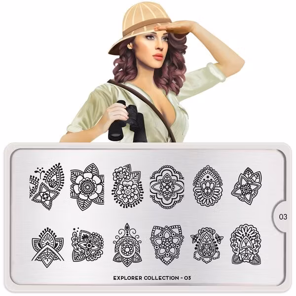 MoYou London Explorer 03 innehåller 12 olika designer, var och en med måtten 1,5 x 2 cm.