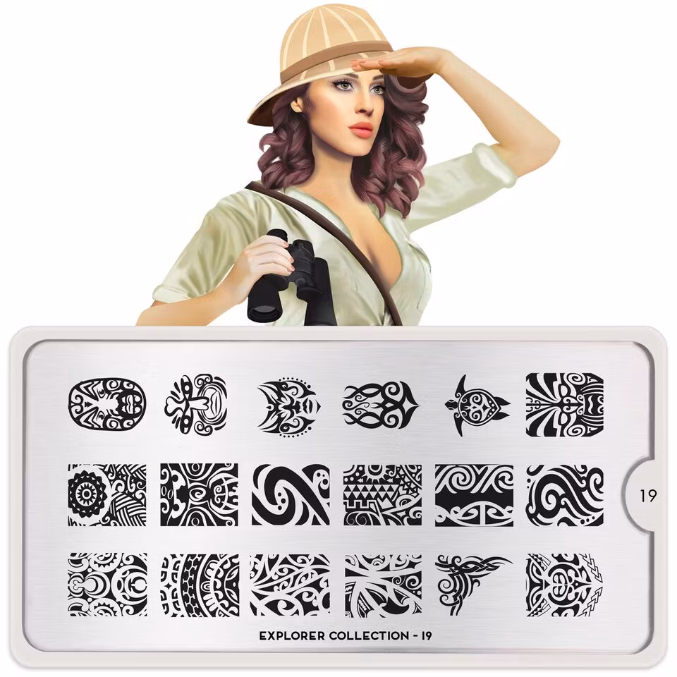 MoYou London Explorer 19 innehåller 18 olika designer, var och en med måtten 1,2 x 1,5 cm.