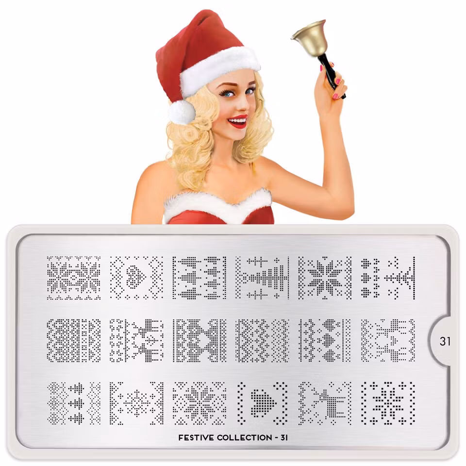 MoYou London Festive 31 innehåller 18 olika designer, var och en med måtten 1,2 x 1,5 cm.