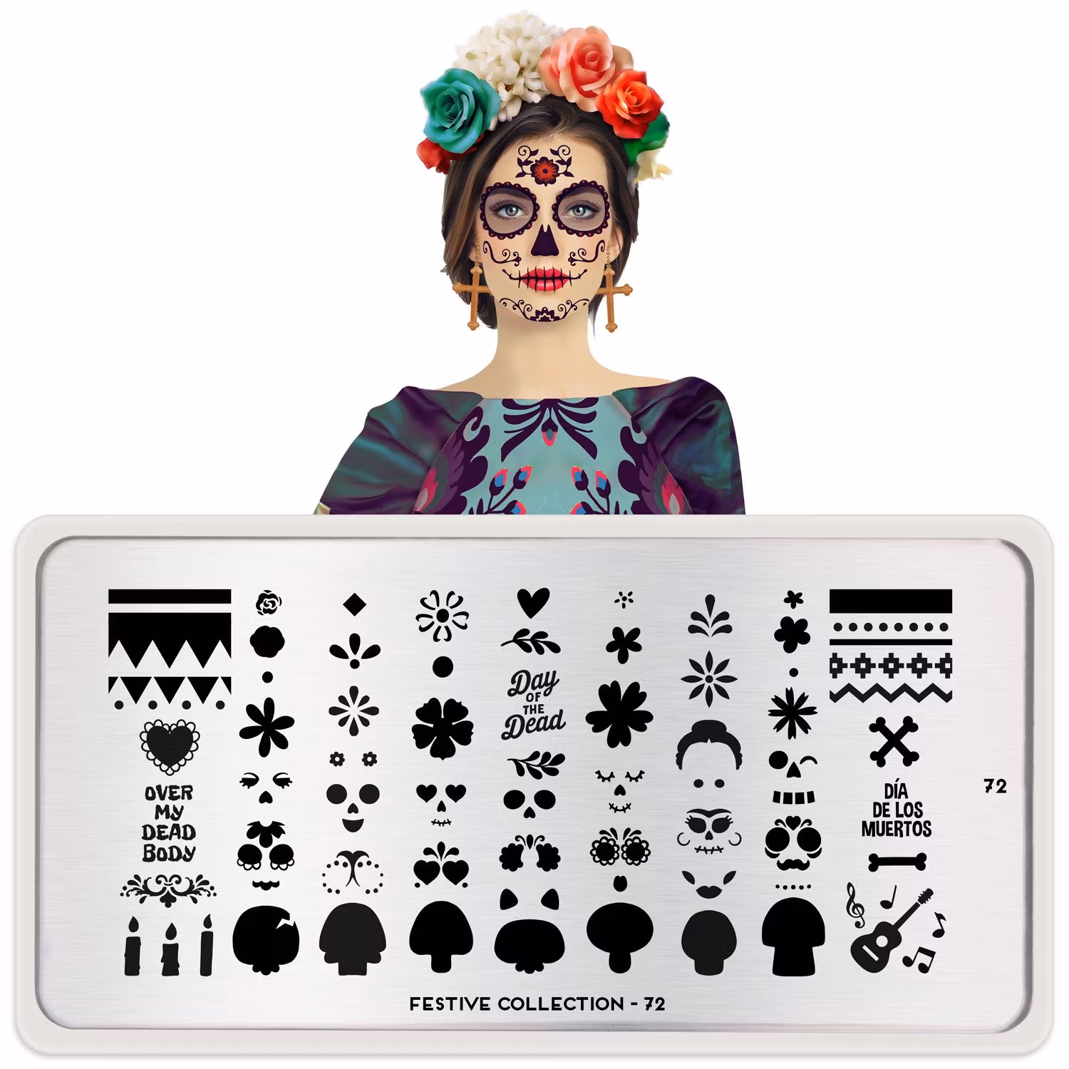 MoYou London Festive 72 innehåller flera olika designer av varierande storlekar. De flesta av mönstren är anpassade för överlappningsteknik där du kan stämpla med olika färger för att få riktigt fina och avancerade mönster på dina naglar.