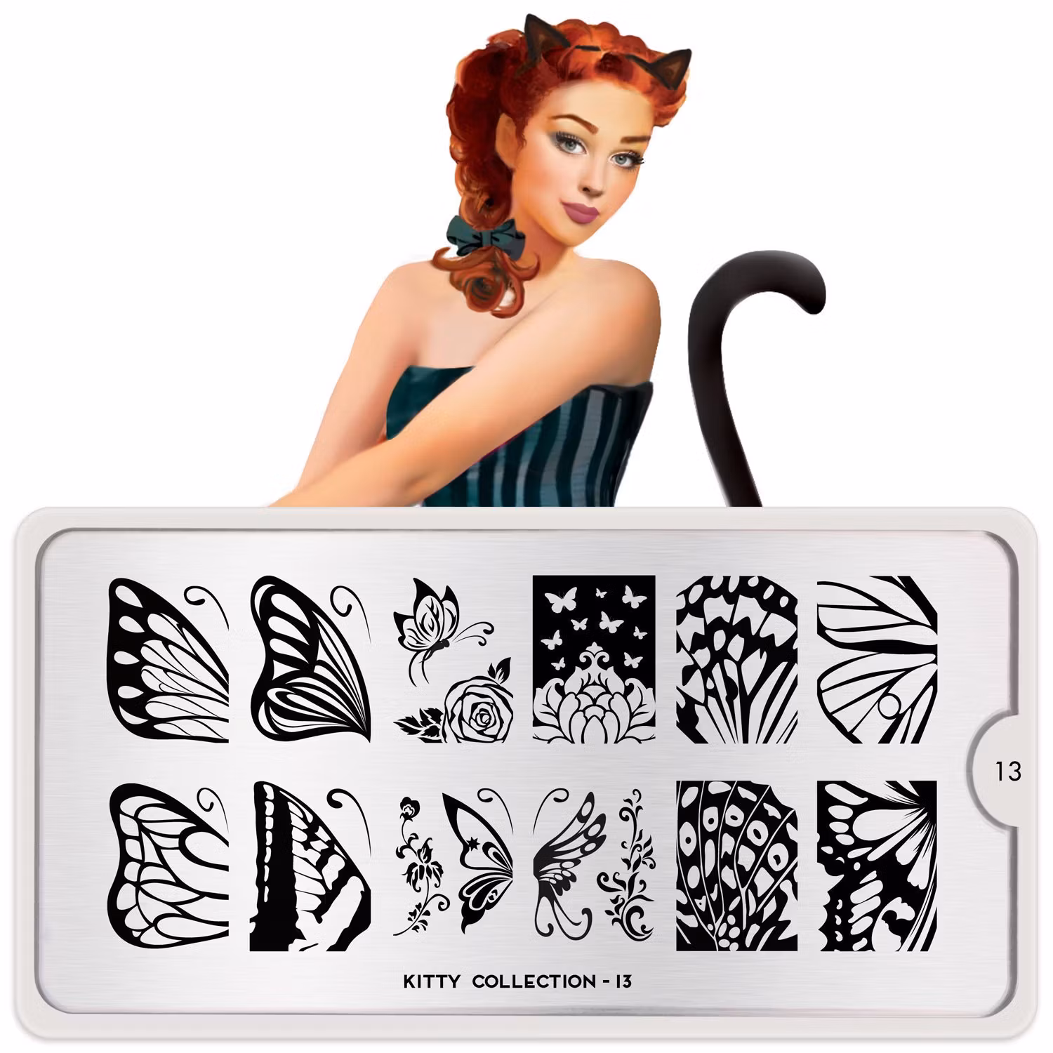 MoYou London Kitty 13 innehåller 12 olika designer, var och en med måtten 1,5 x 2 cm.