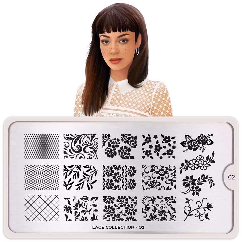 MoYou London Lace 02 innehåller 18 olika designer, var och en med måtten 1,2 x 1,5 cm.