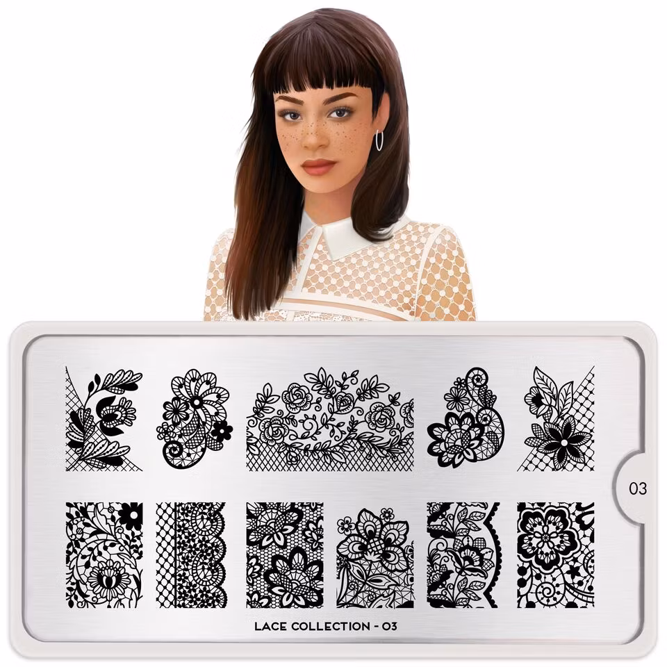 MoYou London Lace 03 innehåller 12 olika designer, var och en med måtten 1,5 x 2 cm.