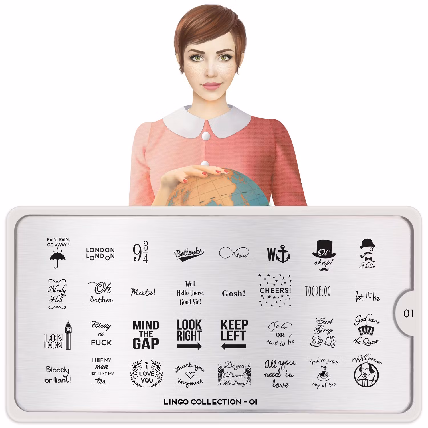 MoYou London Lingo 01 innehåller flera olika designer av varierande storlekar.