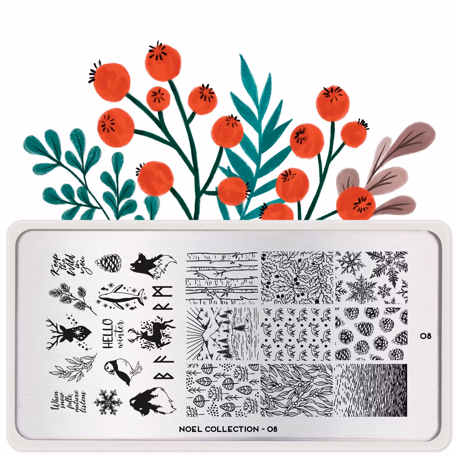 MoYou London Noel 08 innehåller flera olika designer av varierande storlekar.