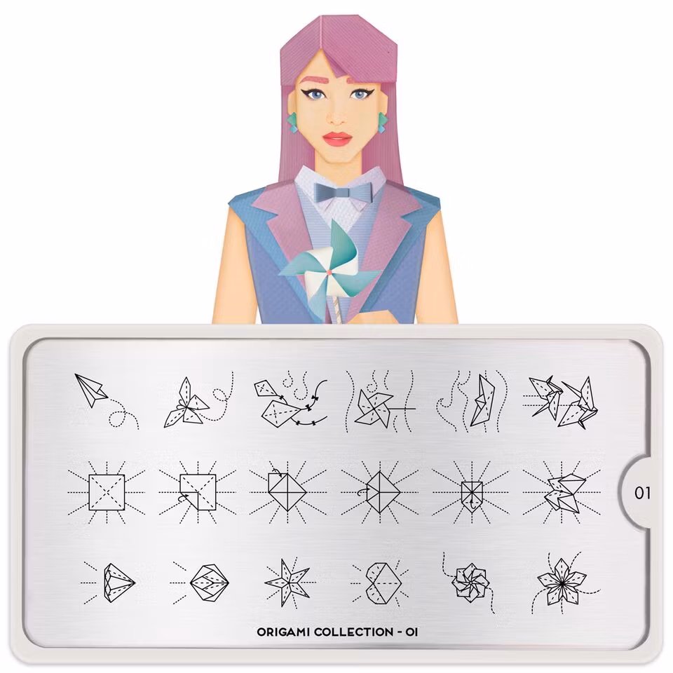 MoYou London Origami 01 innehåller 18 olika designer, var och en med måtten 1,2 x 1,5 cm.