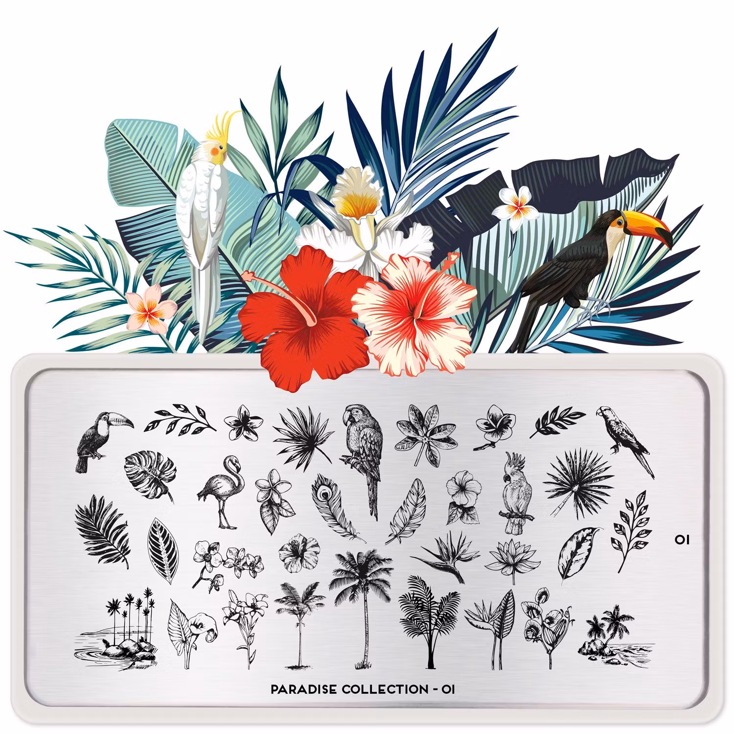 MoYou London Paradise 01 innehåller flera olika designer av varierande storlekar.