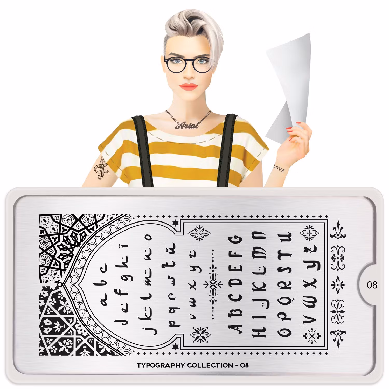 Mönsterplatta av hög kvalitet från välkända MoYou London. Tillverkad av rostfritt stål med måtten 12,5 x 6,5 cm. Varje stämpelplatta kommer med sitt eget skyddande fodral. Den här stämpelplattan används ihop med MoYou Londons stämplar som köps separat.