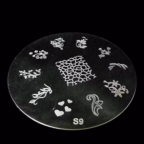 Stampingplate med flera läckra motiv. Används tillsammans med en stämpel och skrapa för att snabbt och enkelt fixa läckra mönster på dina naglar. Det finns ett tunt plasthölje på plåten som ska tas bort innan första användningen.