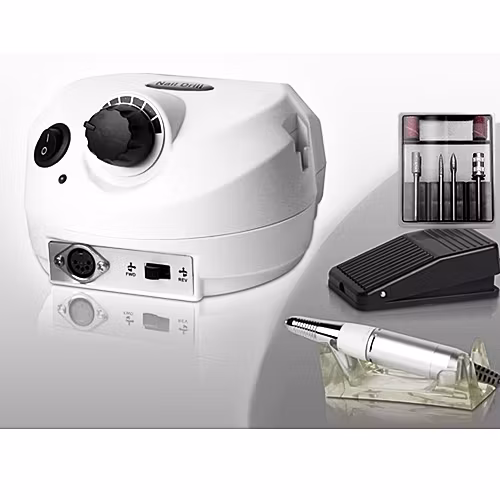Vit elektrisk nagelfil med bra kvalitet och snygg, kompakt design.